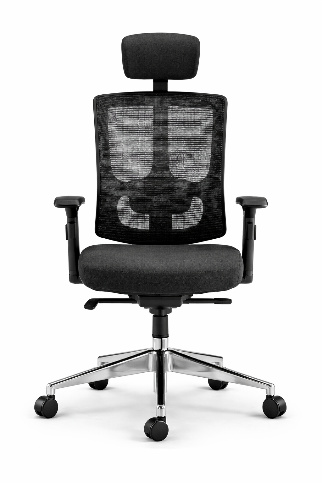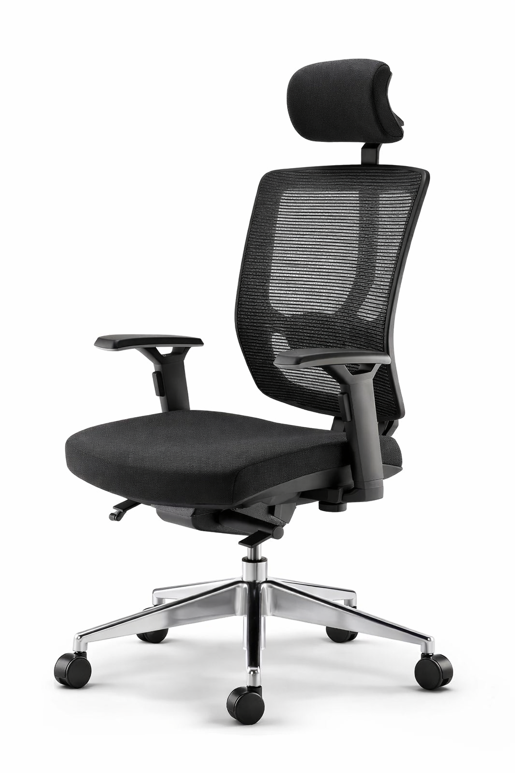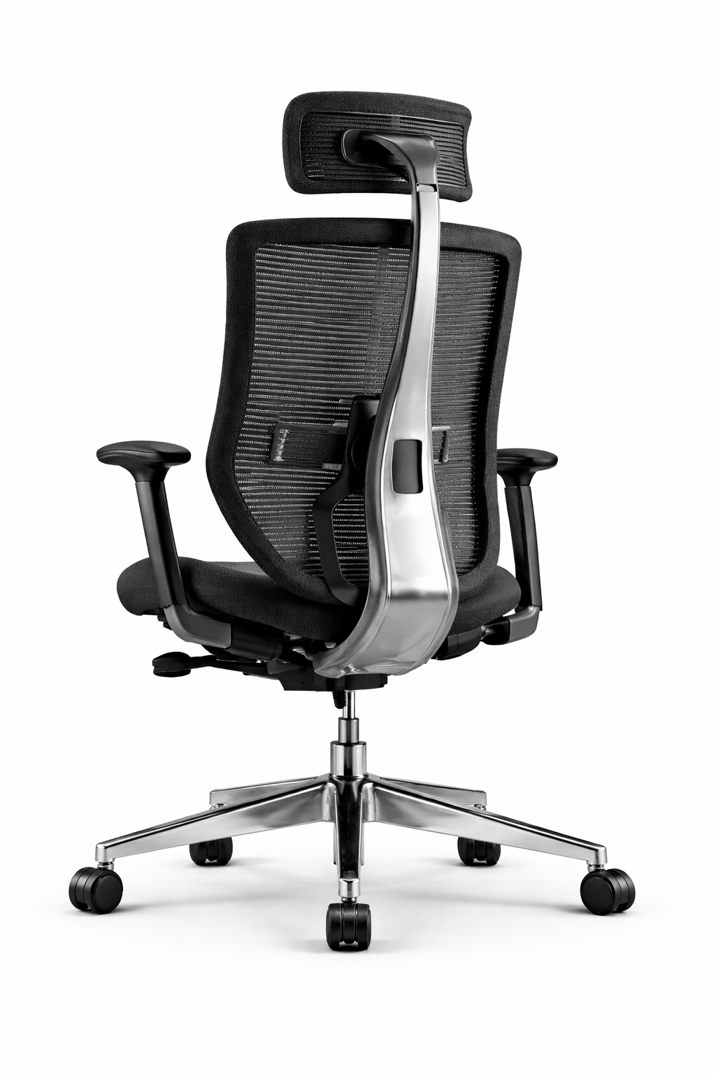 A modern ergonomic mesh office chair with adjustable headrest and breathable back support. Designed for long working hours, it provides comfort, posture support, and smooth mobility for office or home workspace.